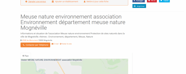 Informations et situation de l’association Meuse nature environnement Protection de sites naturels dans la ville…
